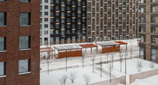 частный садик на 150 детей будет в первом корпусе, он займет первые 3 этажа в секциях 3 и 4. мы поставили теневые навесы во дворе детского сада — это был последний штрих, теперь территория и все ее площадки, качалки, песочницы, турники, брусья, лавочки — готовы. отделку пока не делаем — за нее возьмется покупатель или арендатор, чтобы все было в соответствии с его воспитательными предпочтениями.